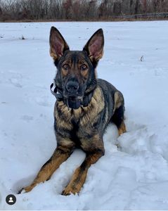 I would just like to take a minute and thank Jamie and Vogelhaus for what they do. When I lost my GSD last year I was pretty devastated. He had been my partner on patrol as a police K9 for 7.5 years before retiring and enjoying his home life. He had been my first official working dog and was a Czech Shepherd. I had been contemplating doing the K9 program again and began looking for a breeder. I found Vogelhaus and saw the dogs, read Jamie’s bio and observed that not only was she breeding her dogs, but also working them. I also noticed that her limited litters that were upcoming were unfortunately sold out. I contacted Jamie with the hopes she could direct me to a breeder(s) she would recommend as I understood her litters would be unavailable for some time. Jamie and I had a wonderful conversation where I felt even more secure in her and her program and hopefully she felt comfortable with me as a prospective purchaser. I told her exactly what I was looking for as far as temperament, confidence, intelligence, athleticism etc. She asked me to wait a bit as she had “some things in the fire”. Jamie contacted me shortly thereafter and said she was receiving a Czech female who was already pregnant and sent me links to the parents (Frida). She said I could have a male out of that litter if one met the criteria. The pups were born and about 5.5 weeks later Jamie said Alphonse was the one. Trusting Jamie, we came down and picked up Alphonse 2.5 weeks later. He was a very serious confident pup unfazed by anything. As a side benefit he was also stunning in appearance, which means nothing for a working dog but it’s a nice bonus! In the following 4 months Alphonse, now Mayhem has been maturing better than I could’ve ever hoped. He’s a very confident, stable and intelligent dog. He’s also very HEALTHY. He is cautious when exposed to new things but rarely if ever scared and works through (with me) any unknowns. He has a great drive and is, as importantly, very eager to please and accomplish tasks. He has a great nose too. All the building blocks to grow into an exceptional Police K9. Thank you Jamie and Vogelhaus for doing what you do, and in the manner in which you do it. She is always there for support and following Mr. Mayhems progress. You don’t just get a GSD from Vogelhaus, you are brought into a very close community. If there’s any doubt left as to the validity of the above, I’m writing this en-route to pick up a second puppy from Vogelhaus for my mother as a companion/protector from the the Gaya litter. -The Marsden family.